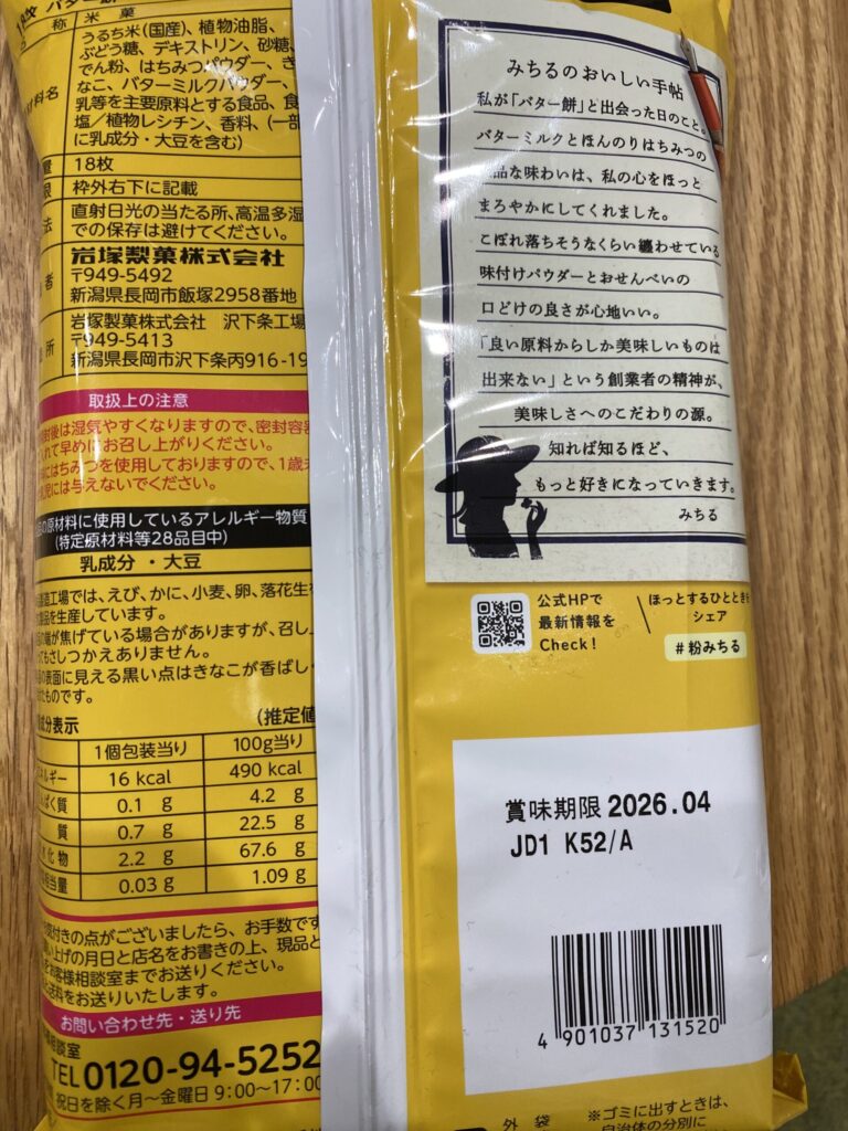 商品名 岩塚製菓 バター餅