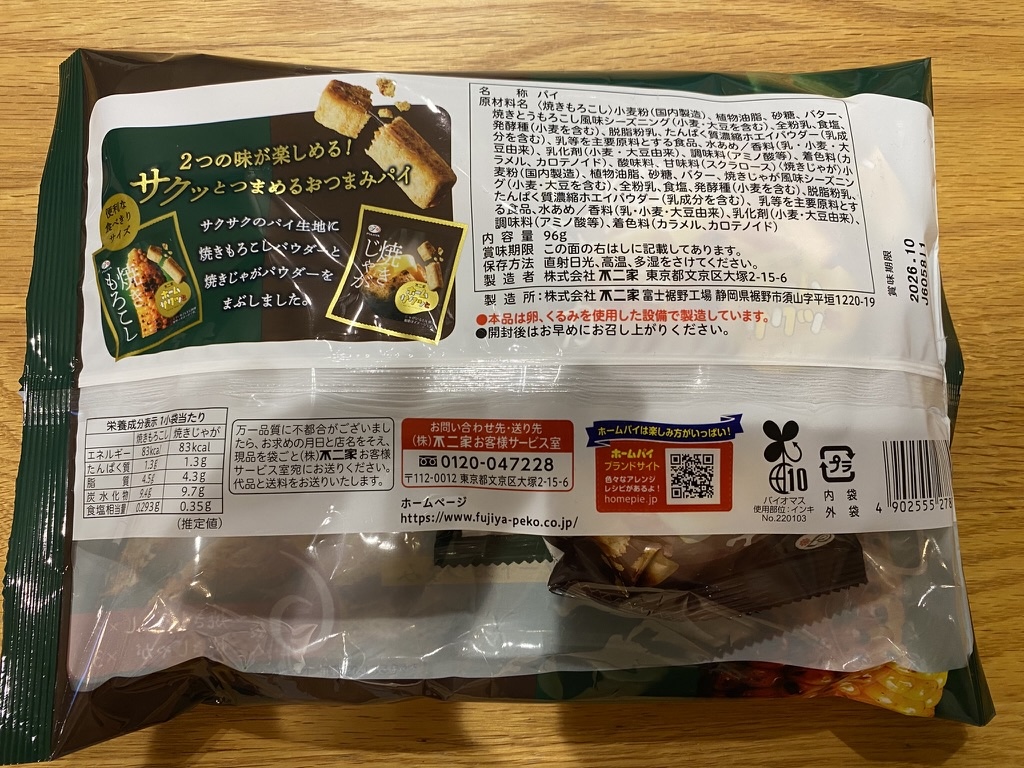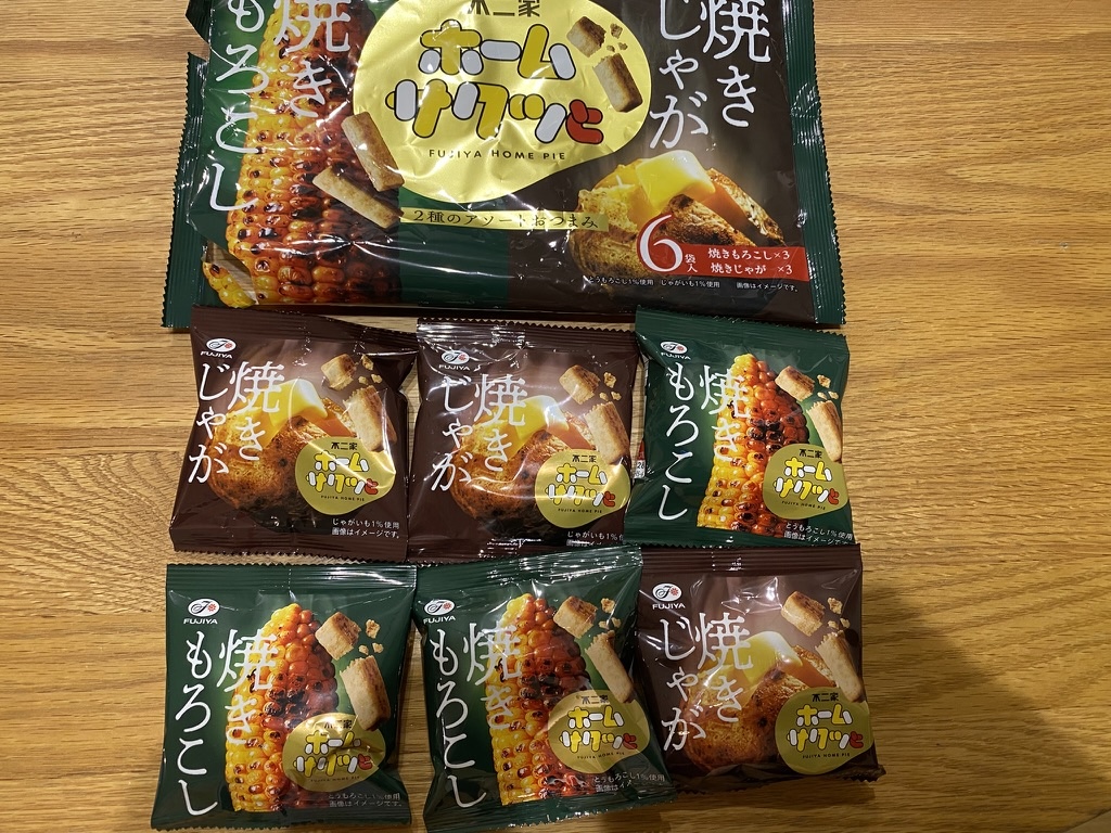 焼きじゃがと焼きとうもろこしが小袋に別々に包まれており、食べ比べる楽しさもあります。