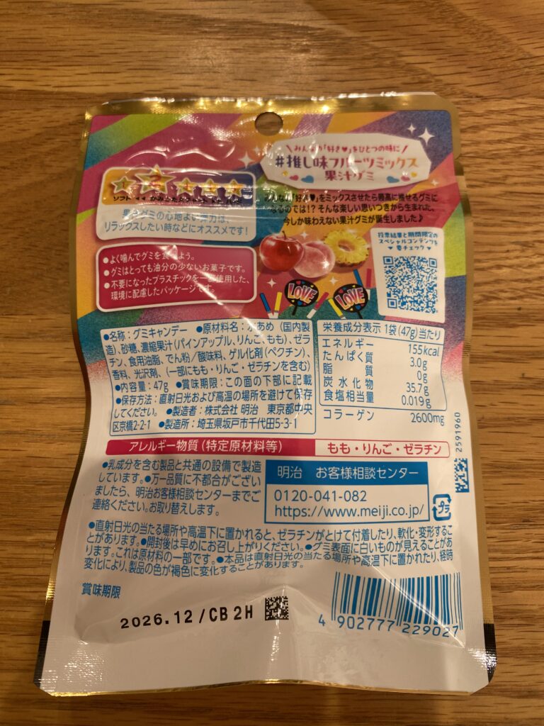 商品名 明治 果汁グミ #推し味フルーツミックス